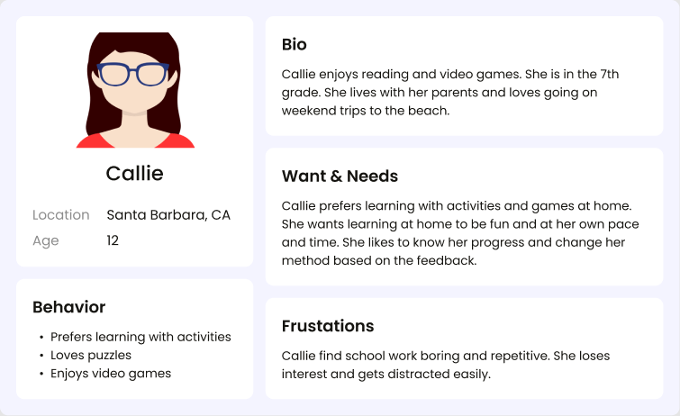 In this mode, the app creates a personalized learning plan for Callie. Based on her answers, the app notifies if it’s correct or incorrect and the answer.